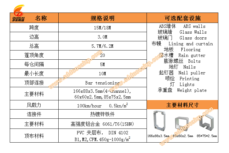 篷房材料: